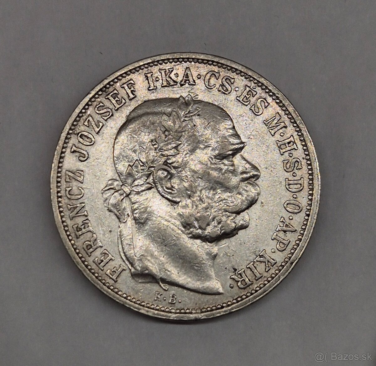 Predám originálnu striebornú mincu 5 Korunu 1908 K.B., František Jozef I.