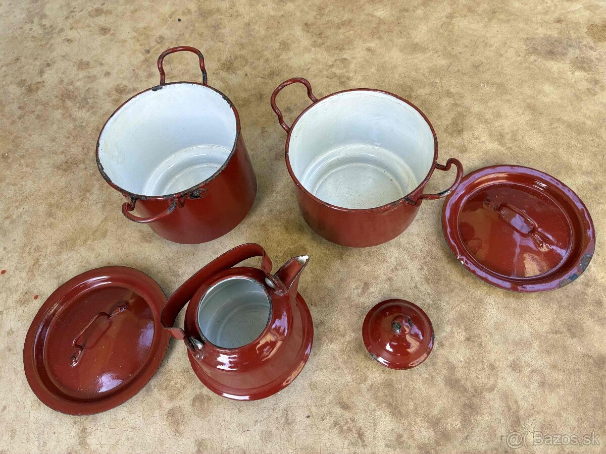 Predám krásnu starožitnú súpravu menšieho smaltovaného nádobíčka, značené, perfektný stav, cena za všetko