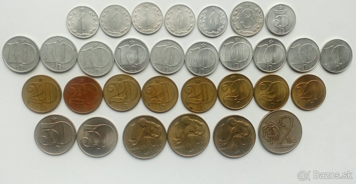 Československé a slovenské mince.