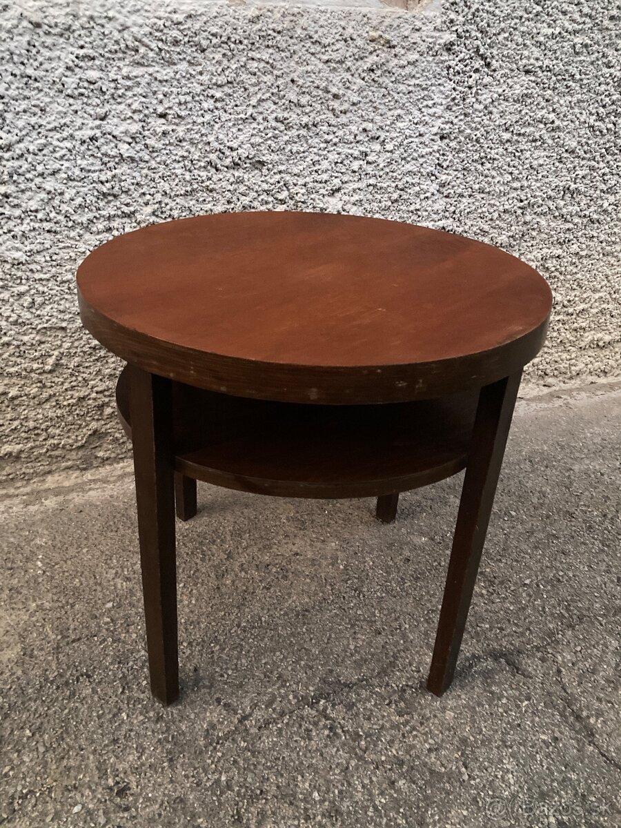 retro okrúhly drevený príručný či konferenčný stolík, v štýle Thonet