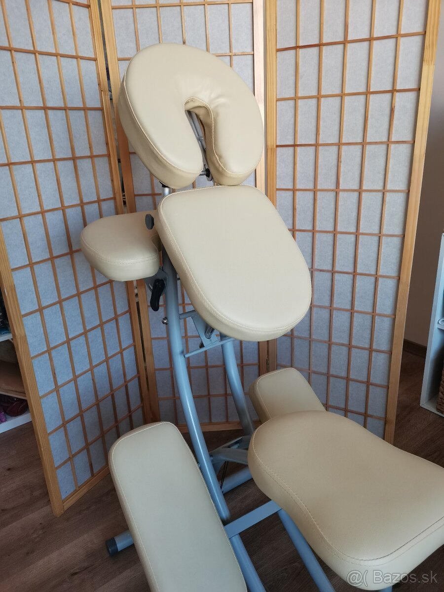 Predám masážnu stoličku na masáž v sede. Hliníková konštrukcia, béžový poťah.