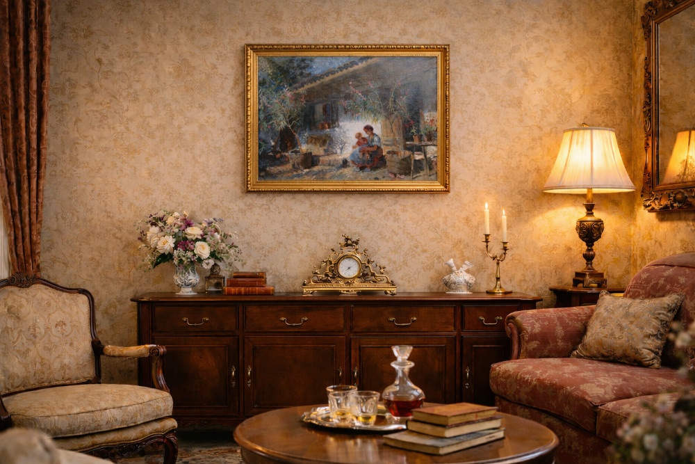 toto dielo predstavuje charakteristický príklad figurálnej žánrovej maľby Ferenca Ujváryho (1898-1971), zakorenenej v tradícii maďarského postimpresionizmu a nagybányovskej maliarskej školy, ktorá v prvej polovici 20. storočia formovala podobu moderného uhorského maliarstva. Obraz sa vyznačuje vyváženou kompozíciou, kultivovanou farebnosťou a presvedčivým maliarskym rukopisom, ktoré potvrdzujú autorovu profesionálnu zrelosť.