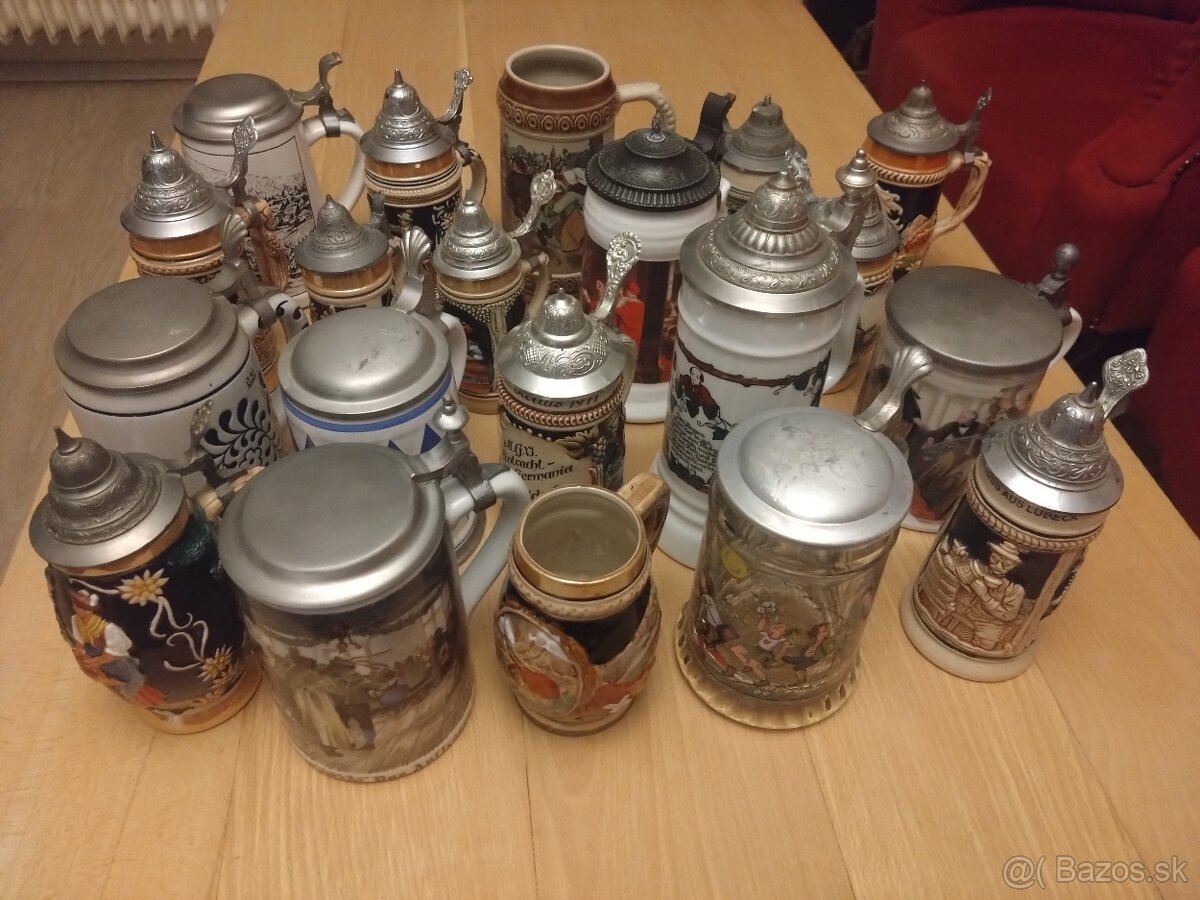 Predám pivné korbele, krigle. Ideálne na chalupu alebo pre zberateľa pivných pohárov. V celkovom počte 20ks za symbolickú cenu 100euro čo vás v prepočte vychádza jeden ks iba 5euro