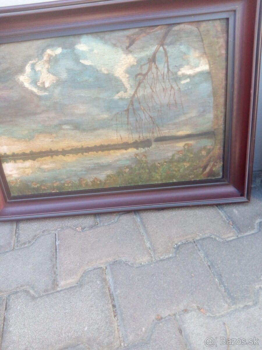 predám olejomaľby na plátne od neznámeho autora 1xpovodeň na Latorici 65 x 46 cm, 1x krajina 77 x 48 cm spolu s rámom cena za ks 40 eu zlacnenie