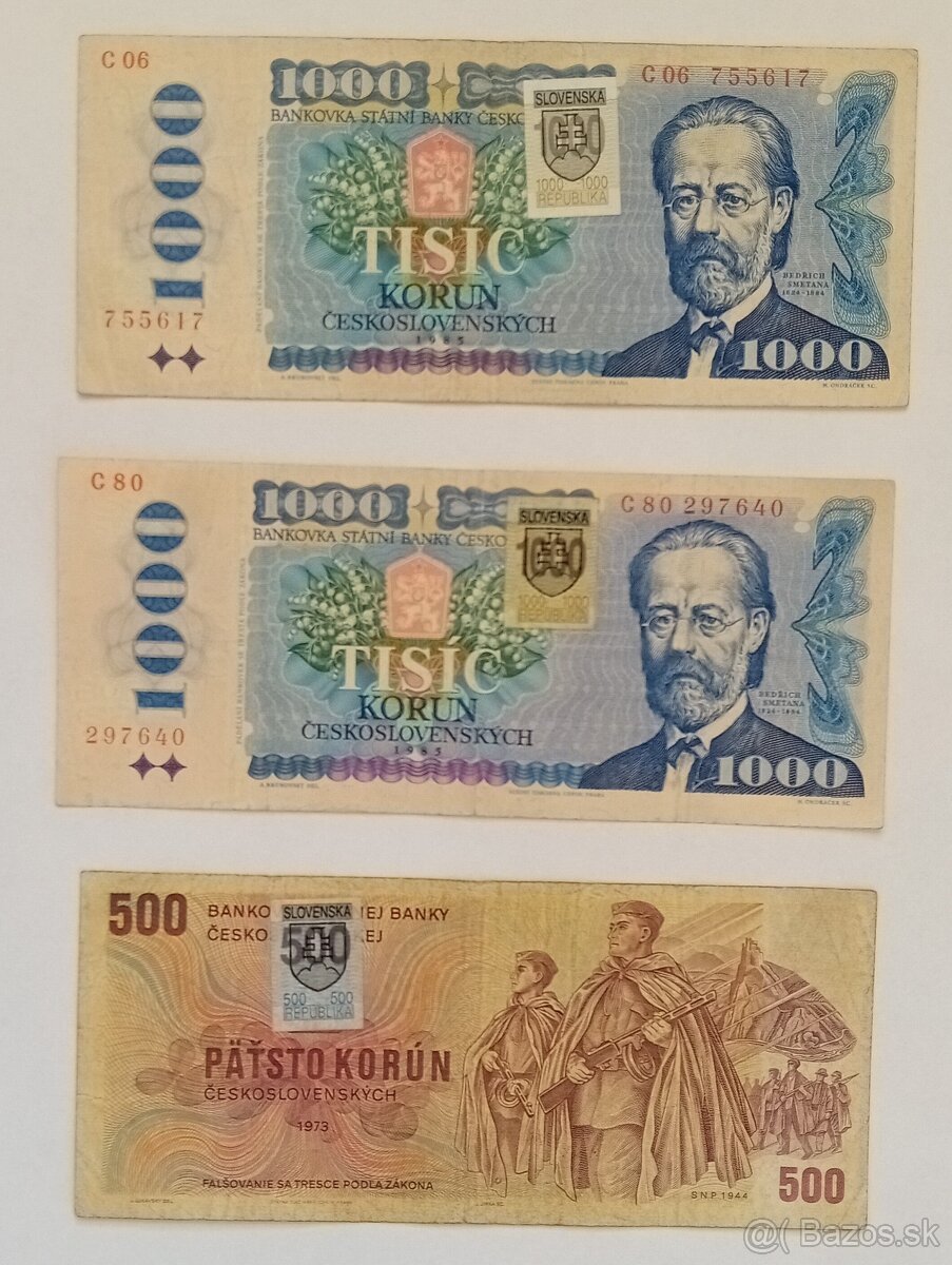 Sestava bankovky 100-500-1000 kčs - [2.1. 2026]Sestava bankovky 100-500-1000 kčs, originál, cena 50 euro komplet. Mohu poslat na Slovensko.