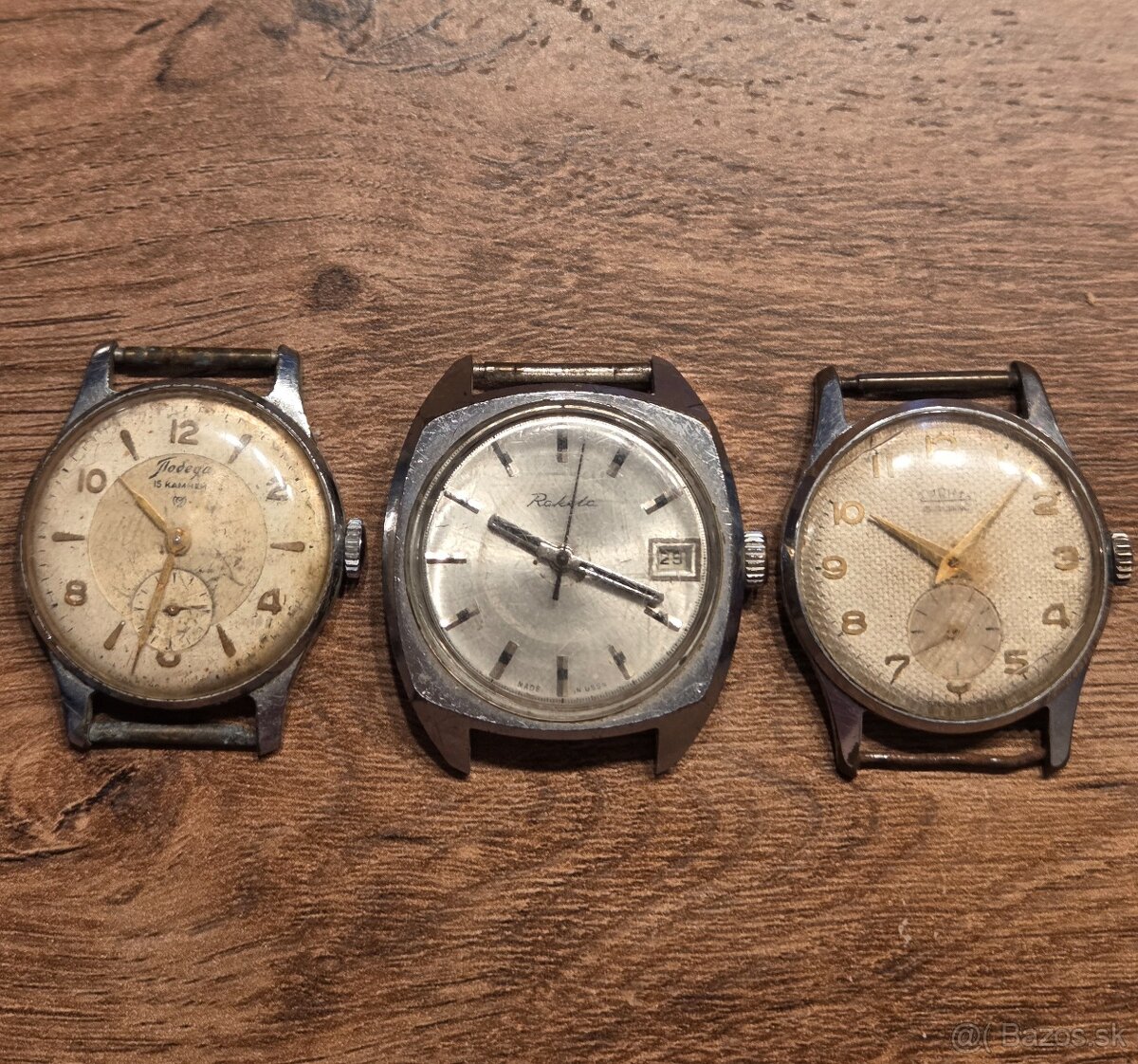 Staré hodinky - [27.12. 2025]Staré hodinky. Hore - mechanické na naťahovanie, chcelo by to však väčšiu korunku aby sa ľahšie naťahovali. Ostatné baterkove. Biele nové ešte s fóliou. Ostatné treba odskúšať s batériou. Všetky spolu za 16 euro. V prípade záujmu písať mail.
