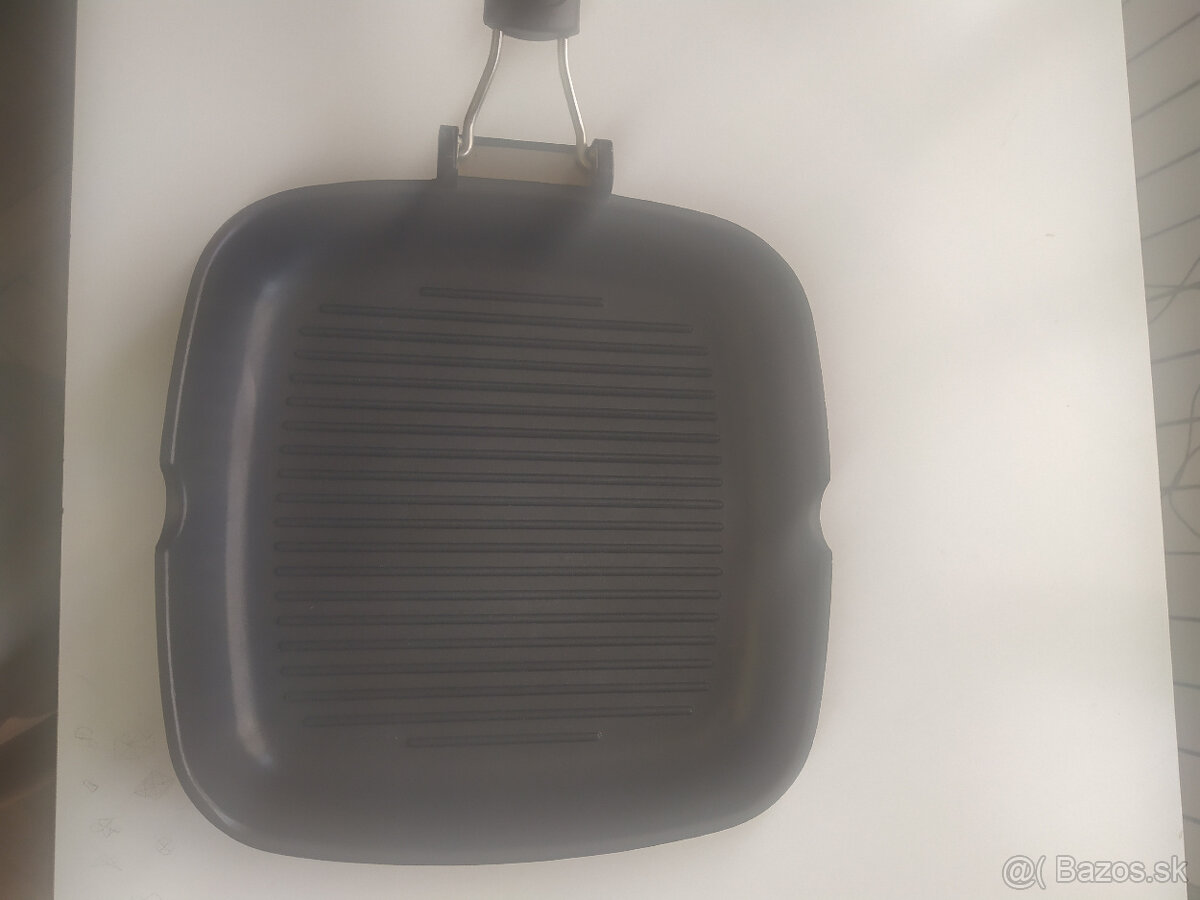 Predám grilovaciu panvicu Tescoma Premium, 28x28. Použitú max 4 krát. Je ako nová. Má skladaciu rúčku. Predajca deklaruje použitie na plynové, elektrické, sklokeramické sporáky. (Nie indukčné.)Teflónový povrch. Aktuálne ceny v internetových obchodoch sa pohybujú od 31,50 do 45,90. Uprednostním osobný odber.