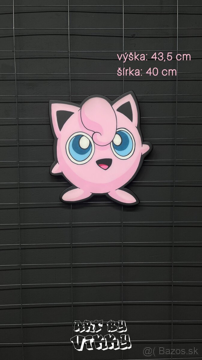 Predám nástennú dekoráciu z dreva v tvare postavičky Pokémon Jigglypuff. Ručne malované akrylom s matným finishom.