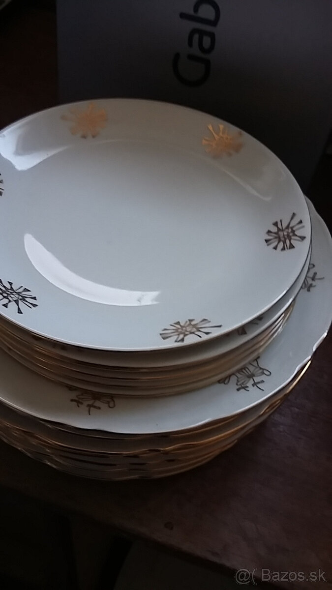 taniere úprava 6- 6 - 6 - [15.2. 2026]Predám súpravu tanierov 6 hlboké, 6 dezertné, 6 dezertné taniere. Pozlatené