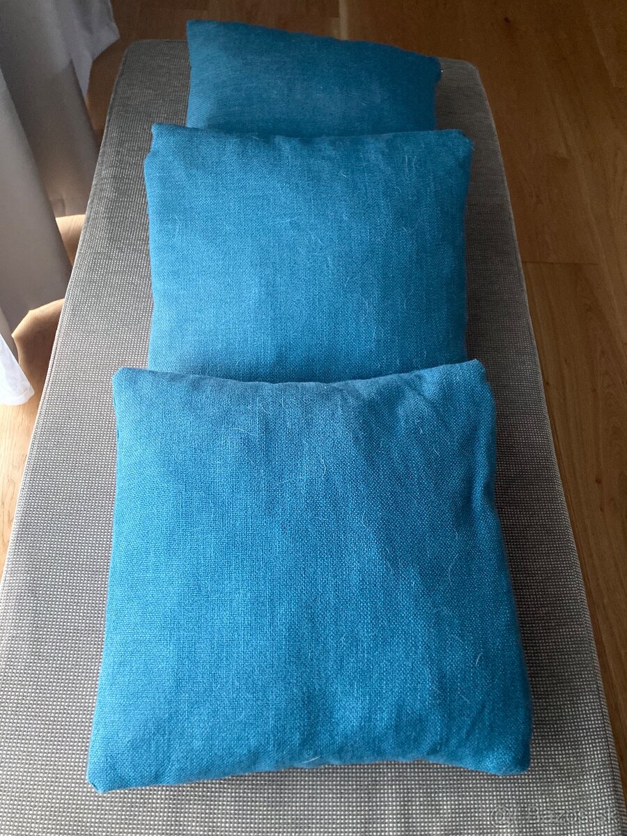 Predám 3 vankúše, 40x40 cm, poťah sa da prať, tyrkysové, cena 10 eur za všetky, tel. 0905257482