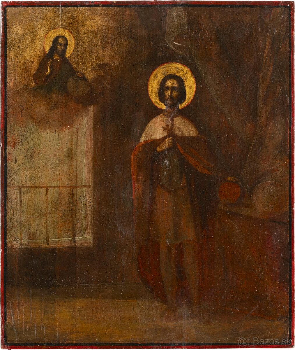 Predám ikonu zobrazujúcu SV. Alexandera Nevskyeho, 2. polovica 19. storočia, olej na drevenej doske. Svätožiary vyrobené zo zlata. Minimálne obnovené. 35 x 30 cm. Pôvod Rus.