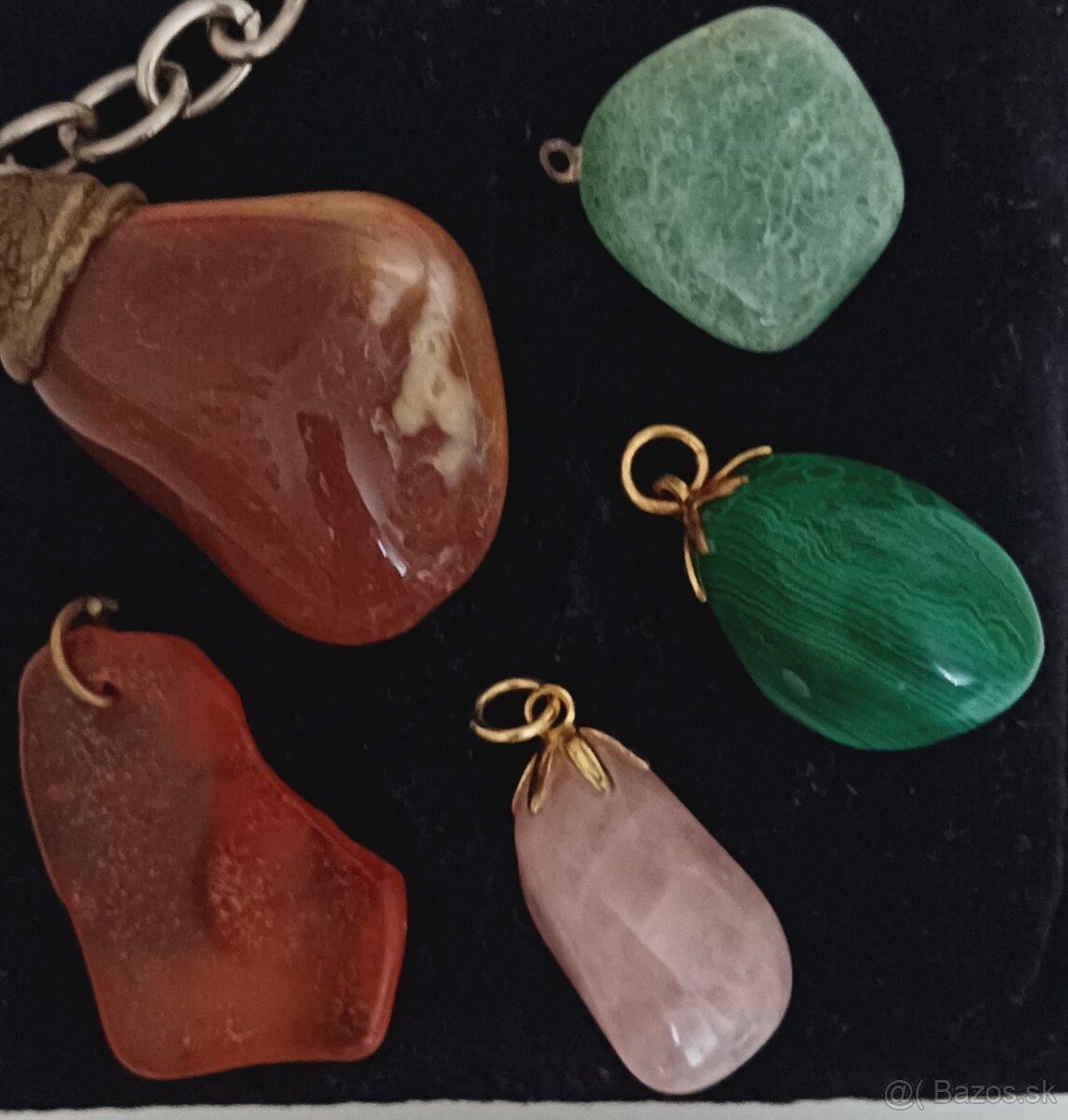 - prívesky 5ks - jadeit, achát, amazonit, jantár a ruženin.