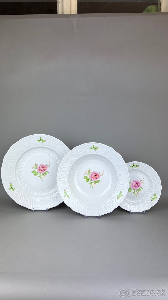 Predám novú sadu tanierov- nikdy nepoužitú. Vyrobená porcelánkou Moritz Zdekauer. Zdobená krásnou ružou. Sada je samozrejme bez poškodenia. Je pre 6 osôb- 6+6+6.