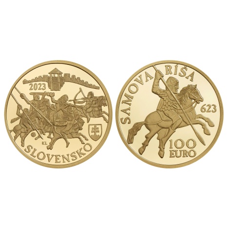 kúpim zlatú zberateľskú euromincu (proof vyhotovenie), v nominálnej hodnote 100 eur - Vznik Samovej ríše - 1400. výročie.