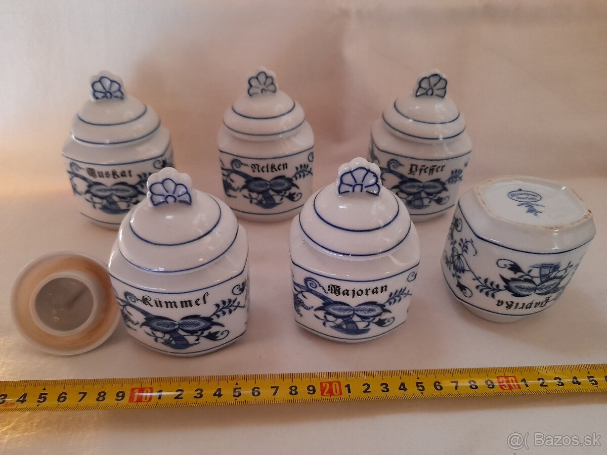 Súprava Dóza na korenie 0,2L s nemeckým nápisom vo švabachu: Muskat, Nelken, Kümmel, Pfeffer, Paprika, Majoran- iba spolu - 133 €