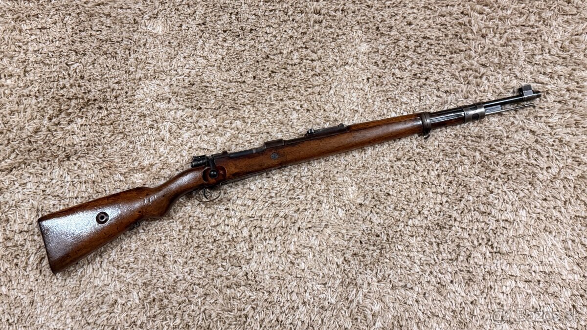 Predám túto guľovnicu z druhej svetovej vojny, Mauser Karabiner 98k, 8x57 JS. Ide o kompletne sčíslovanú pušku - hlaveň, záver, púzdro záveru, ale aj všetky jednotlivé časti zbrane. Rok výroby je 1937 a ide o nemeckú výrobu zbrojovky Mauser Oberndorf pre portugalský kontrakt - puška okrem pôvodných orlíc a názvu zbrojovky Mauser Oberndorf obsahuje aj portugalský výsostný znak.