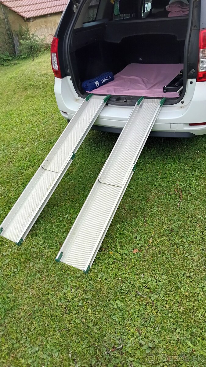Zdravim predám teleskopické nájazdy používané na výjazd elek.inval.vozika do auta.dlzka po roztiahnuti 150cm nosnosť 370 kg