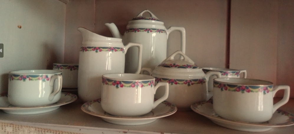 Prodám secesní servis MERKLÍN na čaj a nebo kávu-stáří více než 100let. Začátek výroby se datuje do první poloviny 19století.