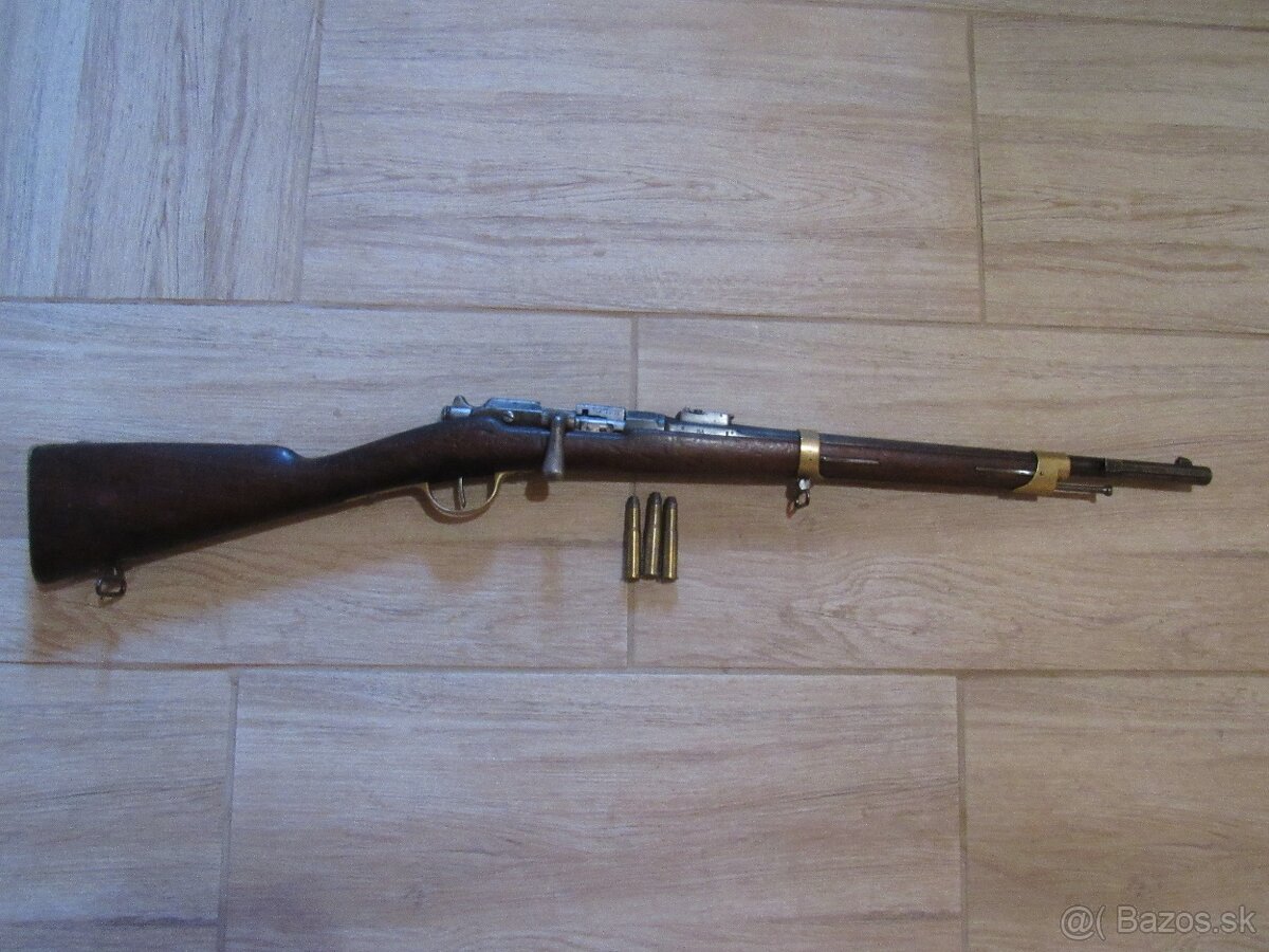 Predám jazdeckú karabínu Gras.M74.rok výroby 1880, kaliber 11x59R, francúzska výroba, 3 originál náboje ( strelivo bežne dostupné ), komplet sčíslovaná ! perfektný stav ! certifikát ! cena 1000,- + malá dohoda