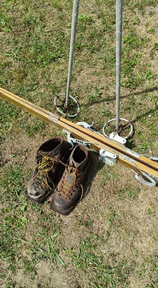 Predám starý lyžiarsky set - lyže, palice a lyžiarky v nálezovom stave.