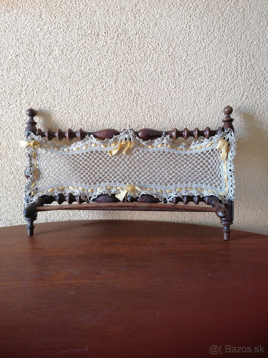 Predám krásnu ručné vyrobenú drevenú poličku s nádhernou ručné háčkovanou čipkou