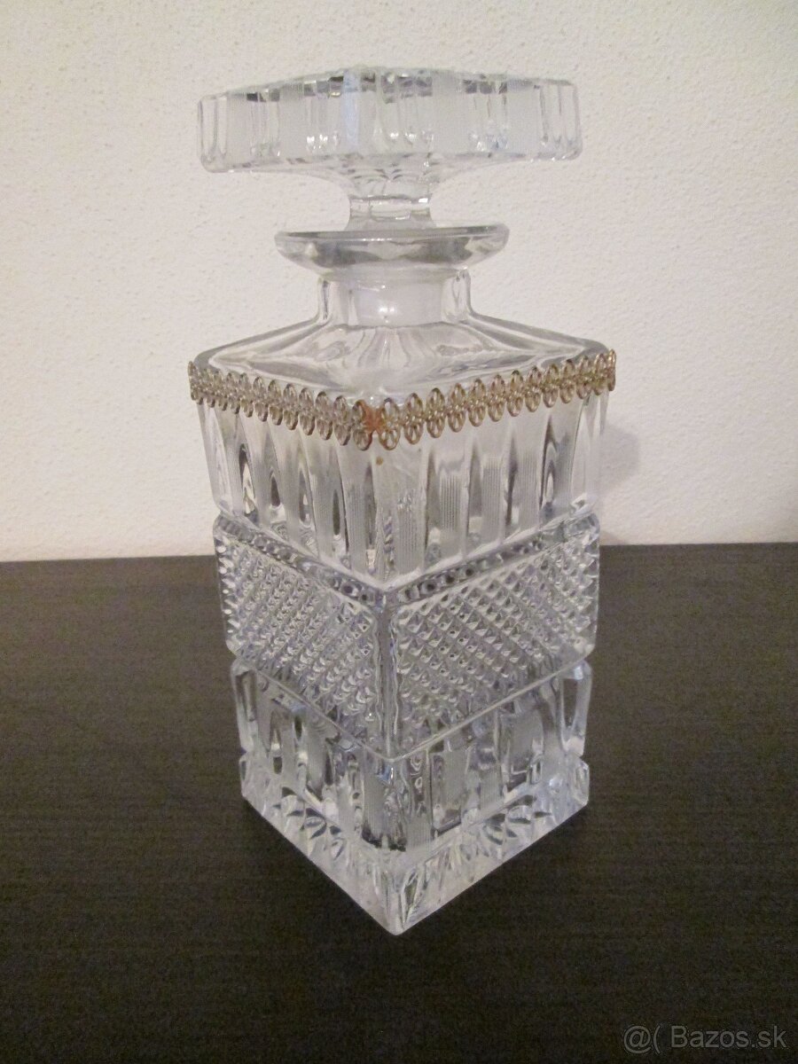 Predám nepoškodenú, nepoužitú karafu na whisky, výška 22 cm, šírka 9 cm,veľkosť vrchnáku 7x7 cm.Karafa má dekor z alpaky.