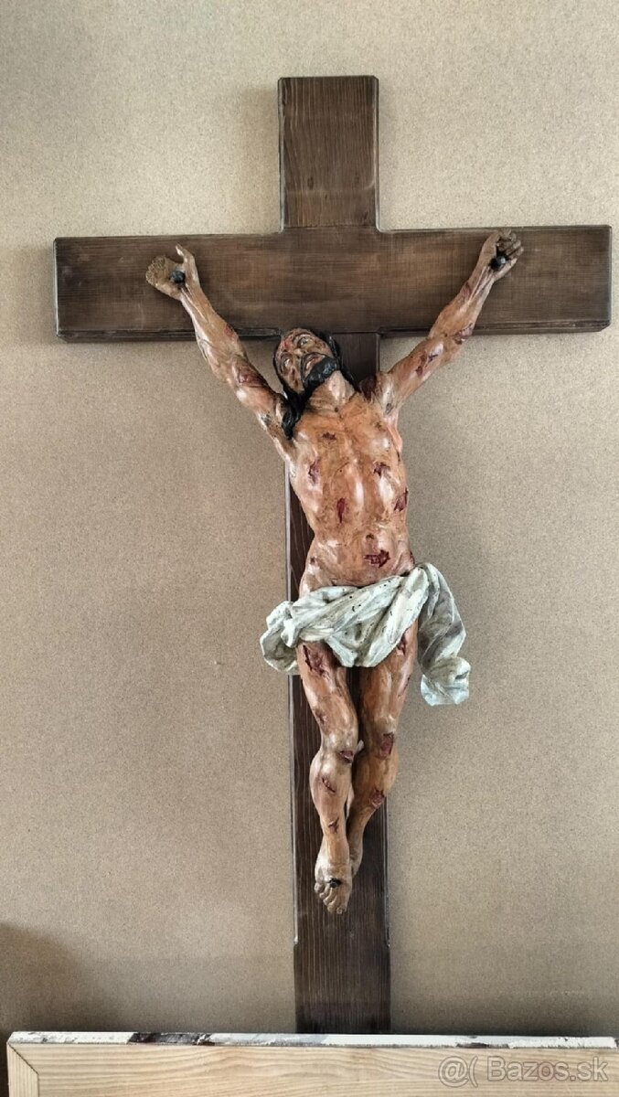 Ručné vyrezávaný drevený Ježiš, 80cm vysoký(bez kríža)