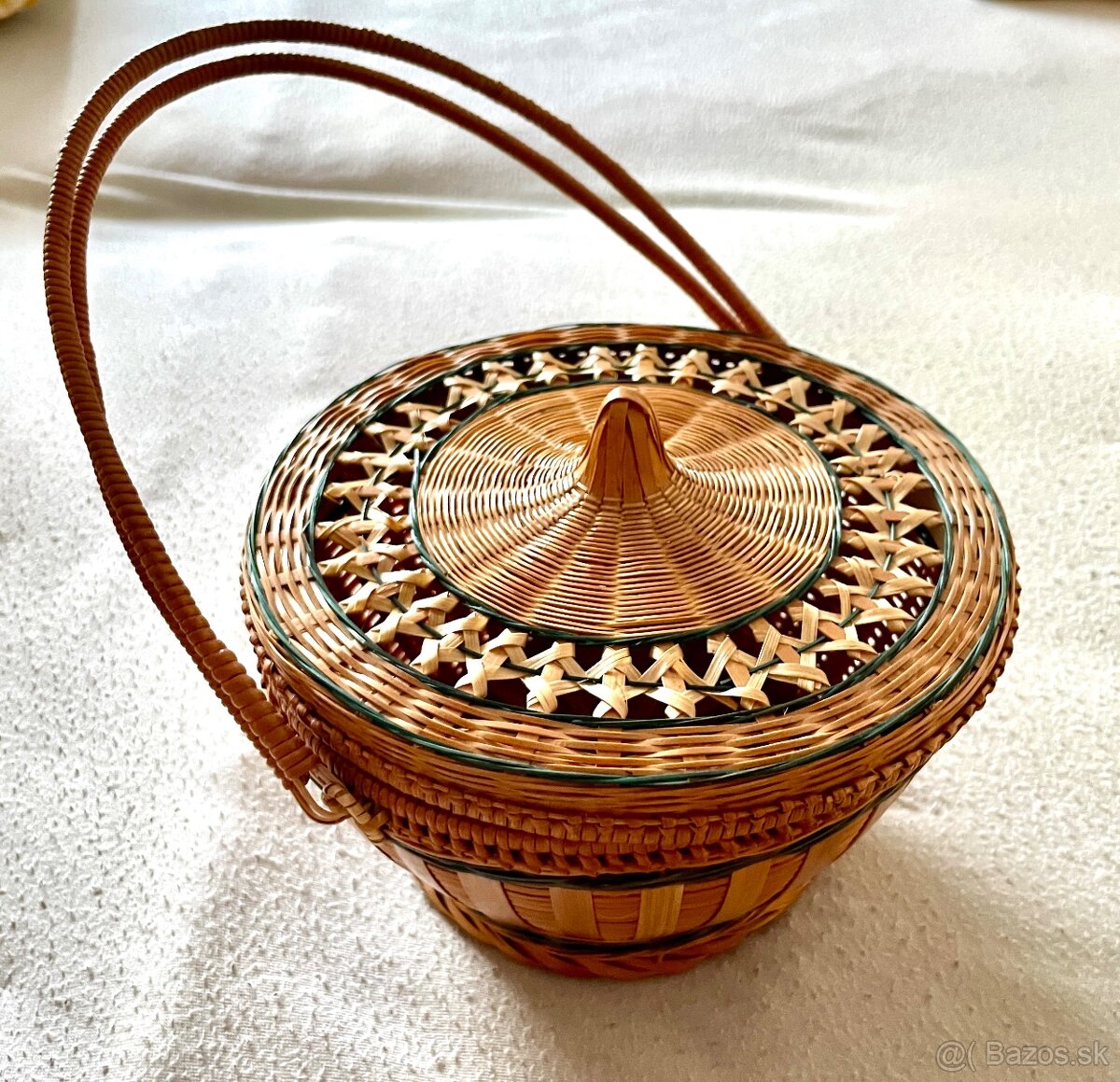Predám krásny prútený košík, ktorý je možné aj zavrieť a využiť nielen pre deti ako veľkonočný košík, ale aj na odkladanie osobných predmetov či šperkov. Košík má aj dvojicu rúčiek na nosenie. Priemer je zhruba 16cm.