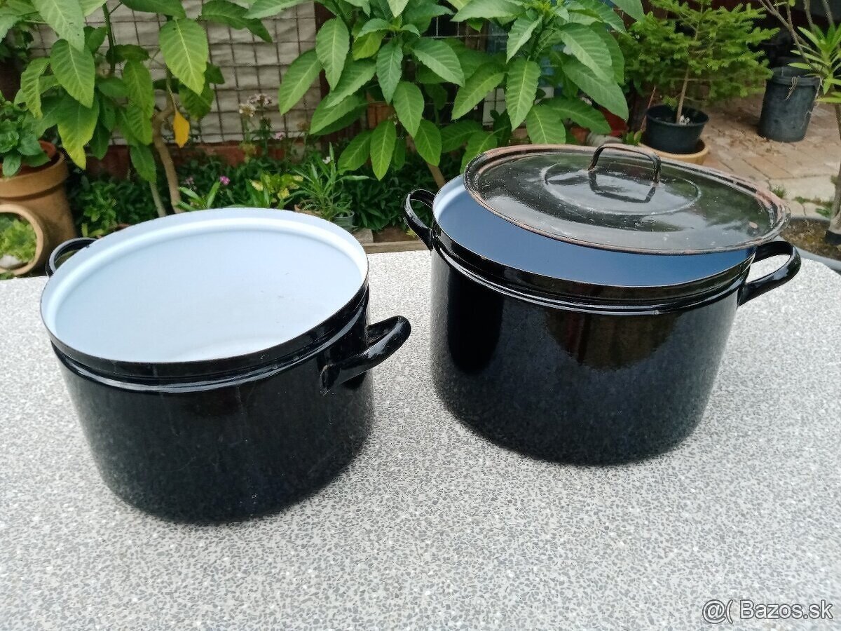 Reagujem iba na emaily, tel.číslo nie je používané. Predám veľké smaltové hrnce. Väčší 30 litrový s pokrievkou - PREDANÝ. 25 litrový bez pokrievky má zopár chybičiek krásy - viď posledná foto. K osobnému odberu v obci Lubina pri Novom Meste nad Váhom.
