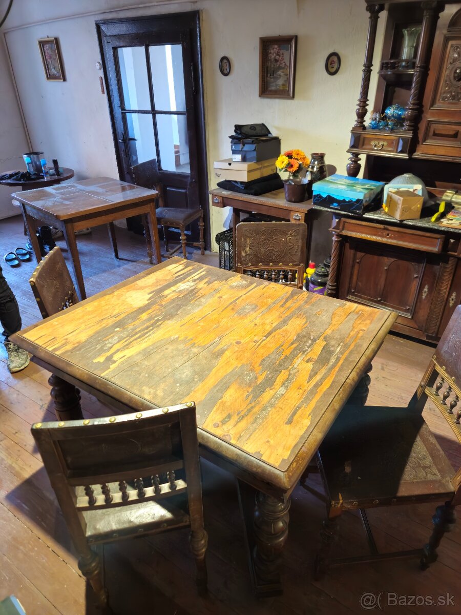 Starožitný jedálenský stôl (UŽ BEZ STOLIČIEK)