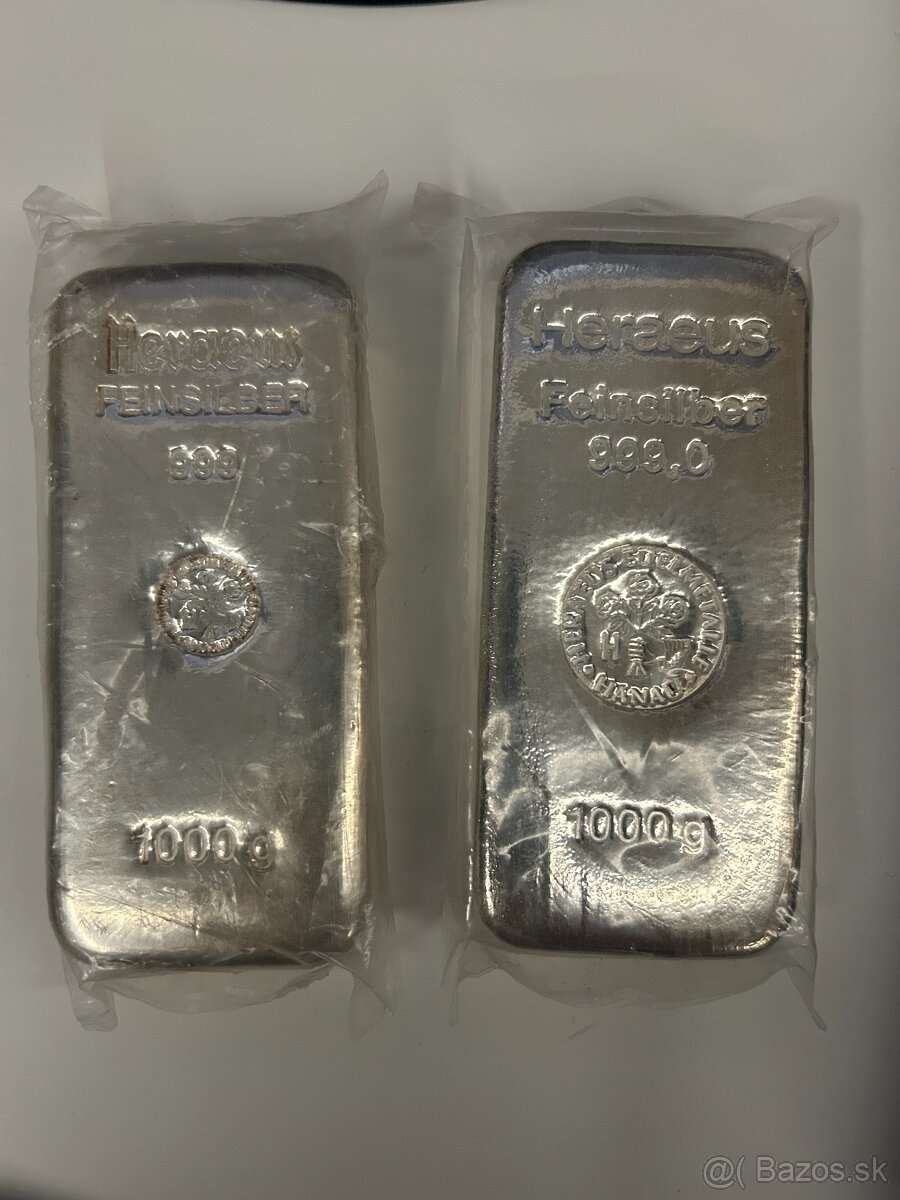 Ponúkam na predaj investičné striebro - 1kg striebornú tehlu Argor Heraeus.