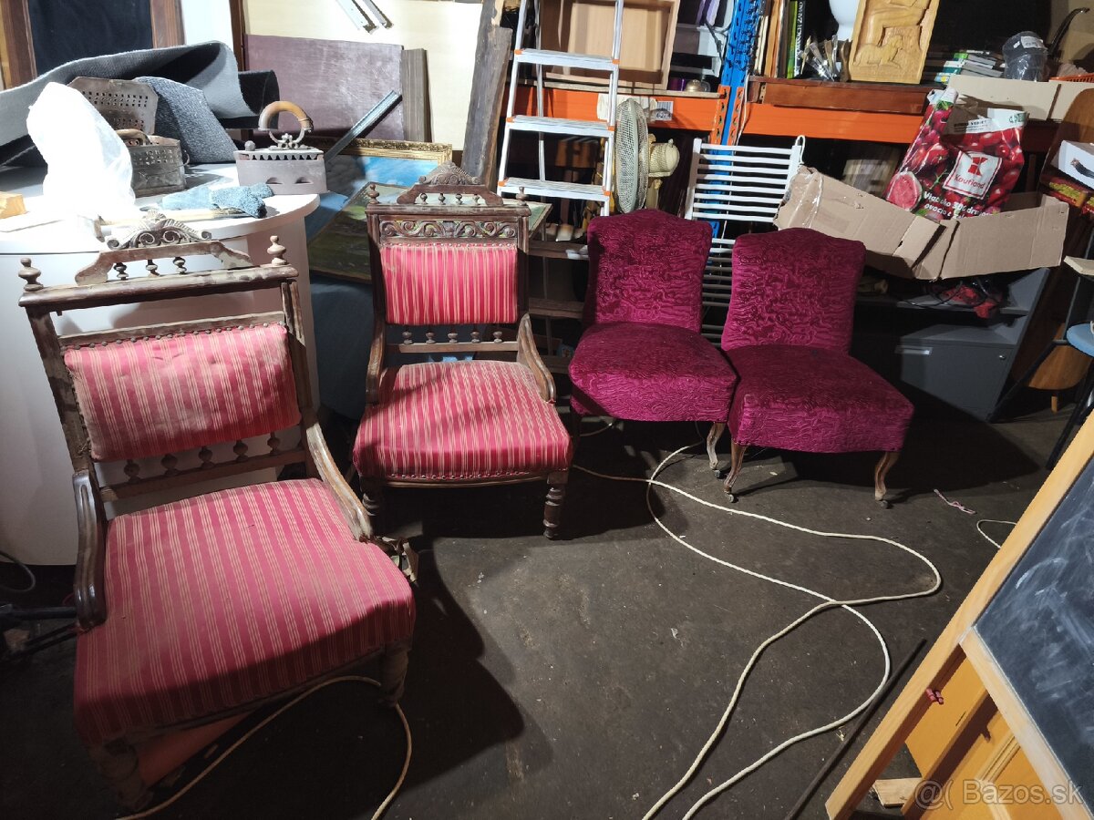 Predám starožitné kreslá v nalezovom stave viď foto Z každého po dva kusy. Ceny dohodou.