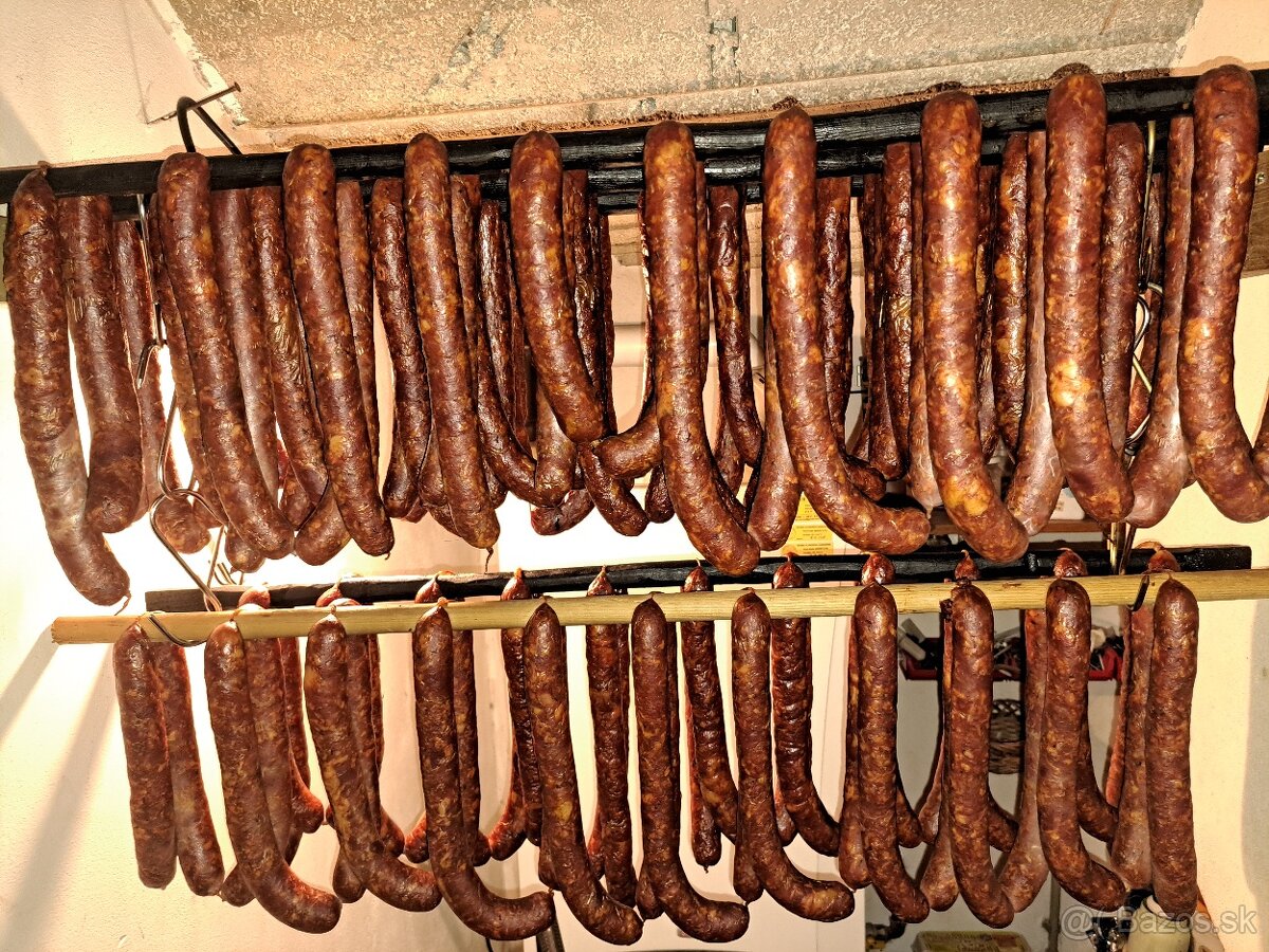 Domace klobasy údené na bukovom dreve.