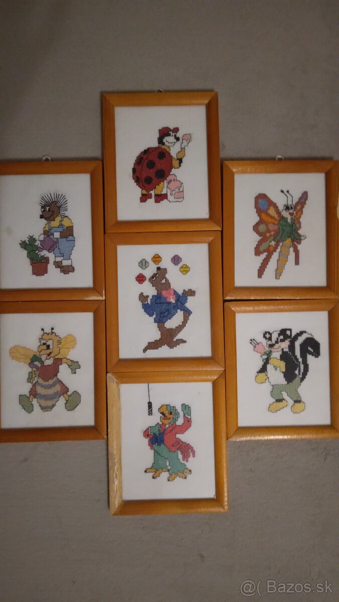 Predám vyšívané obrázky s rozprávkovými postavičkami