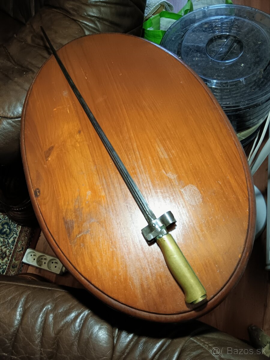 Predam francuzsky bodak lebel v zachovalom stave , cepel je mierne ohnuta ,co je u tychto bodakoch dost bezne. Poistku treba rozbehat. Znacenie som nenasiel.Rukovät ma peknu patinu. Dlzka tuleje je 485mm
