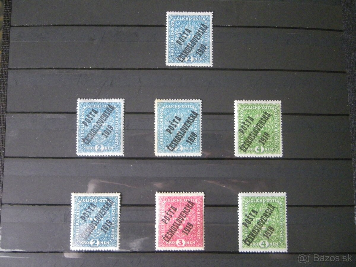 Vzacne postove znamky s pretlacou - ciste s lepom, vyborny stav ( uzke a siroke formaty 25x30mm a 26x29mm, 3 kronen-siroky format 26x29mm), predaj v celku, cena po znizeni 175eur.