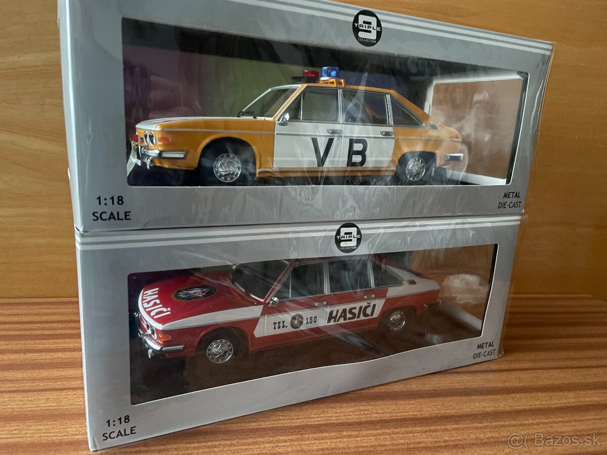 Predám dva modely 1:18 Tatra 613 vo verzii Verejná Bezpečnosť a Hasiči. modely nové, nikdy nevytiahnuté z obalu.