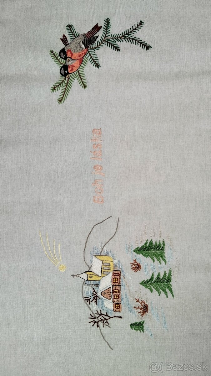 Ručne vyšívaná dečka. Obháčkovaná nová. Pripravená na Vianoce. Rumunsky steh.