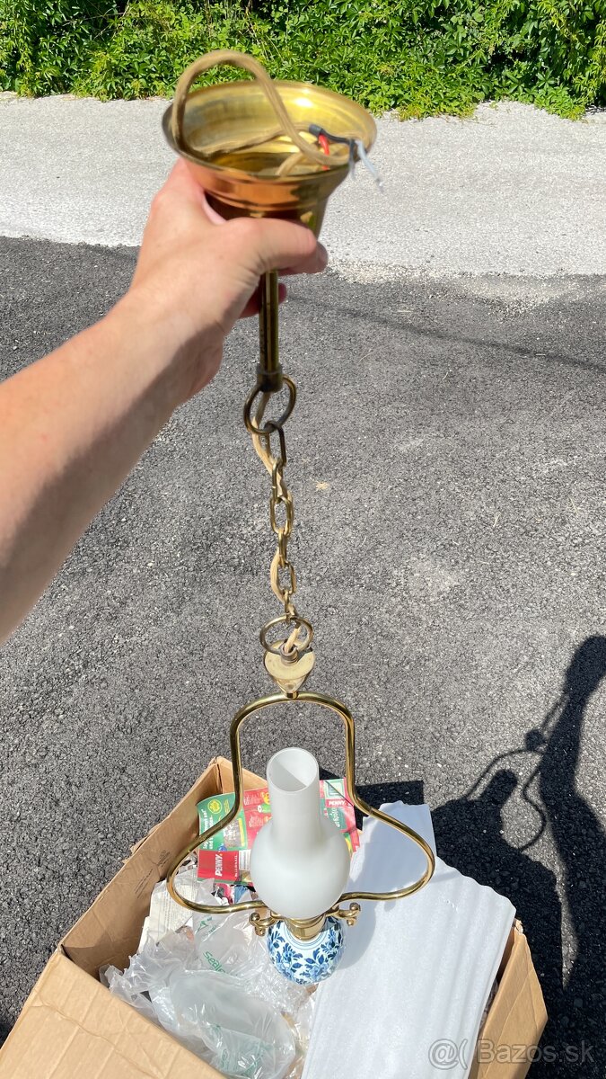 Petrolejový luster - [4.3. 2026]Predám starožitnú závesnú petrolejovú lampu - luster - výškovo nastavitelnú (s protizávažím).