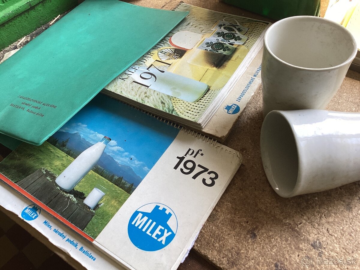 Predám tieto dva kalendáre pre zberateľov nepopisane ,sú z r 1971 a 1973 + fascikel ku tomu s dvoma pohármi čo sa podávalo s kysl mliekom všetko spolu. ako vidno na obrázkoch cena 30e + post alebo osobne