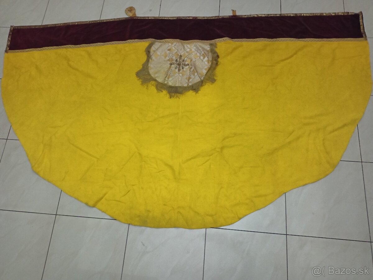 Predám kňažský plašť - material látka, červený zamat, ozdobné lemovky, strapce. Rozmer 3,23m x 1,35m. Je vhodný aj pre mikuláša