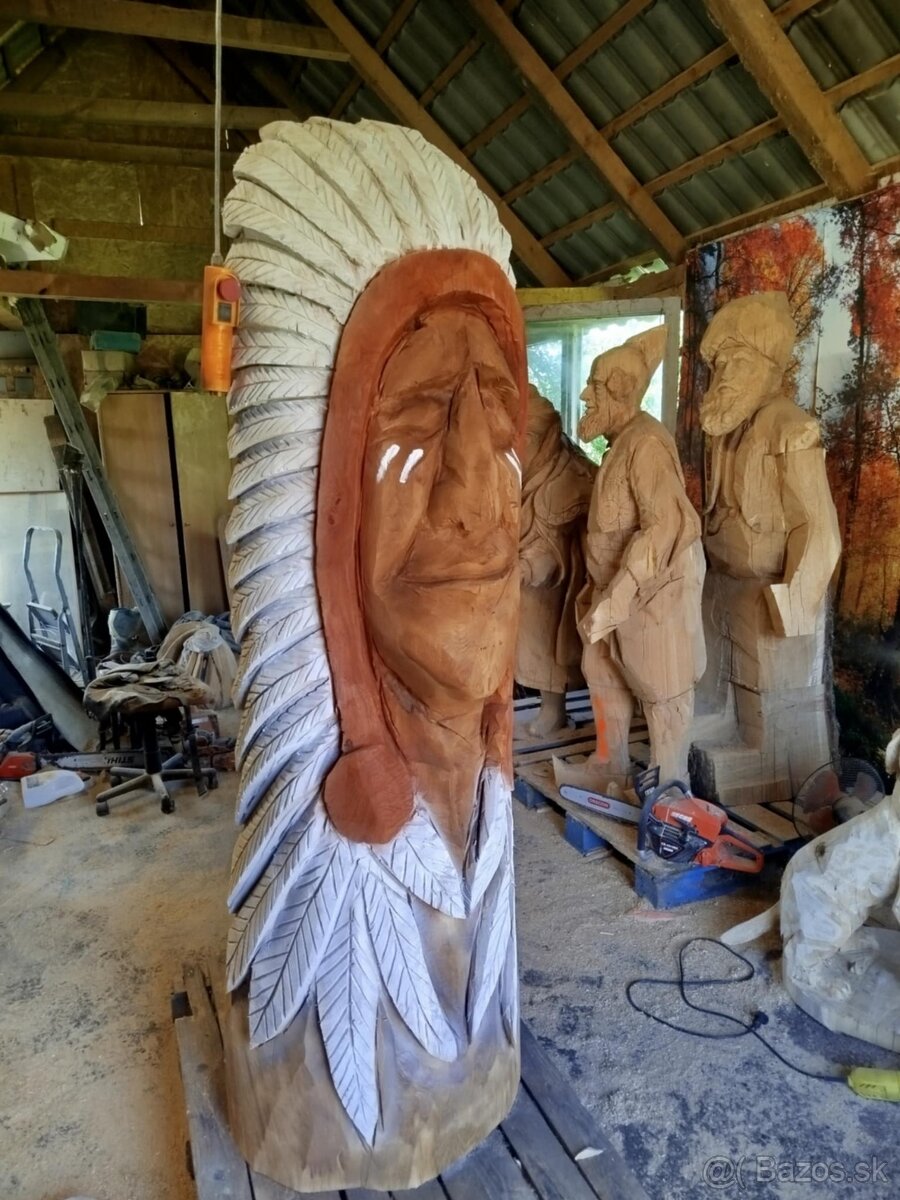 predám sochu indiána vyrobenú z dubu
