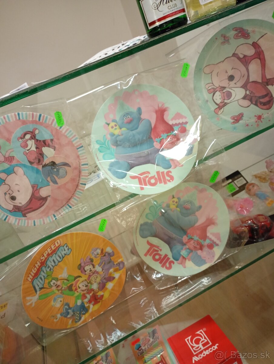 Predám oplátky na tortu, jedlý obrázok. Tie na foto 5.kusov. Cena spolu 10€.