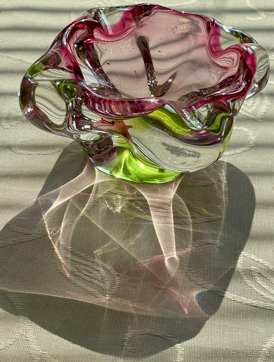 Predám 2 ks farebné misky / popolníky z hutneho skla a 1 ks dózu - číre sklo .