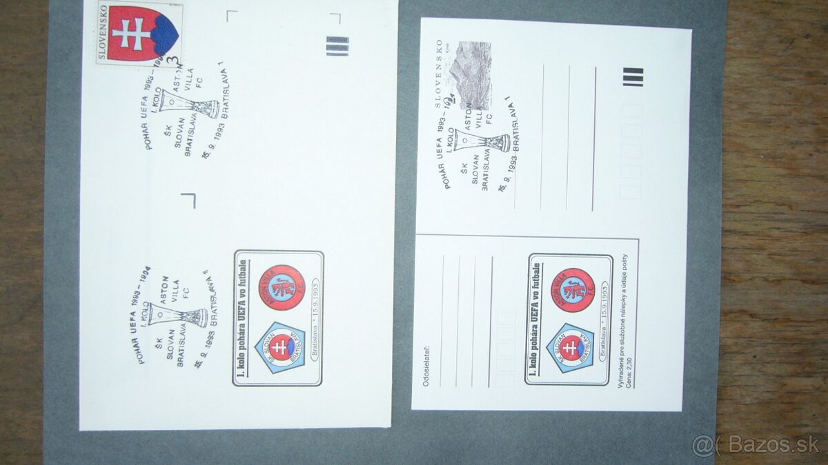 Predám pamätnú obálku a korešpondenčný lístok s príležitostnými pečiatkami k zápasu pohára UEFA 1993-1994 , 15.9.1993 Bratislava 1