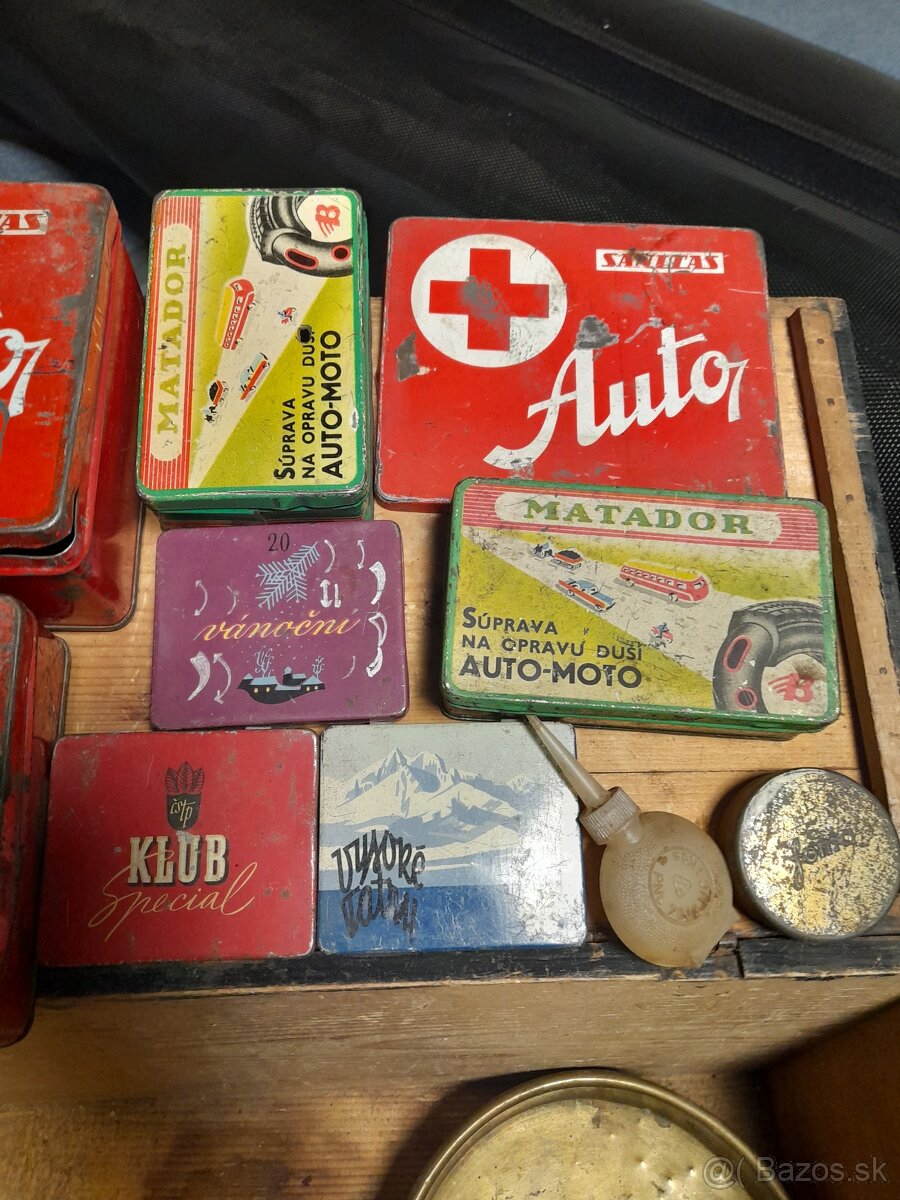 Ponúkam na predaj plechové krabičky a plastový obal lekárnička nálezovom stave.