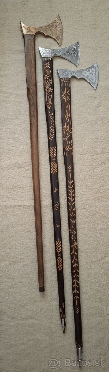 Valašky železne jednoduché,na prechádzky do lesa,možnosť rúbať,váha 600g,90cm 62eur.Drevo je jaseň a buk.