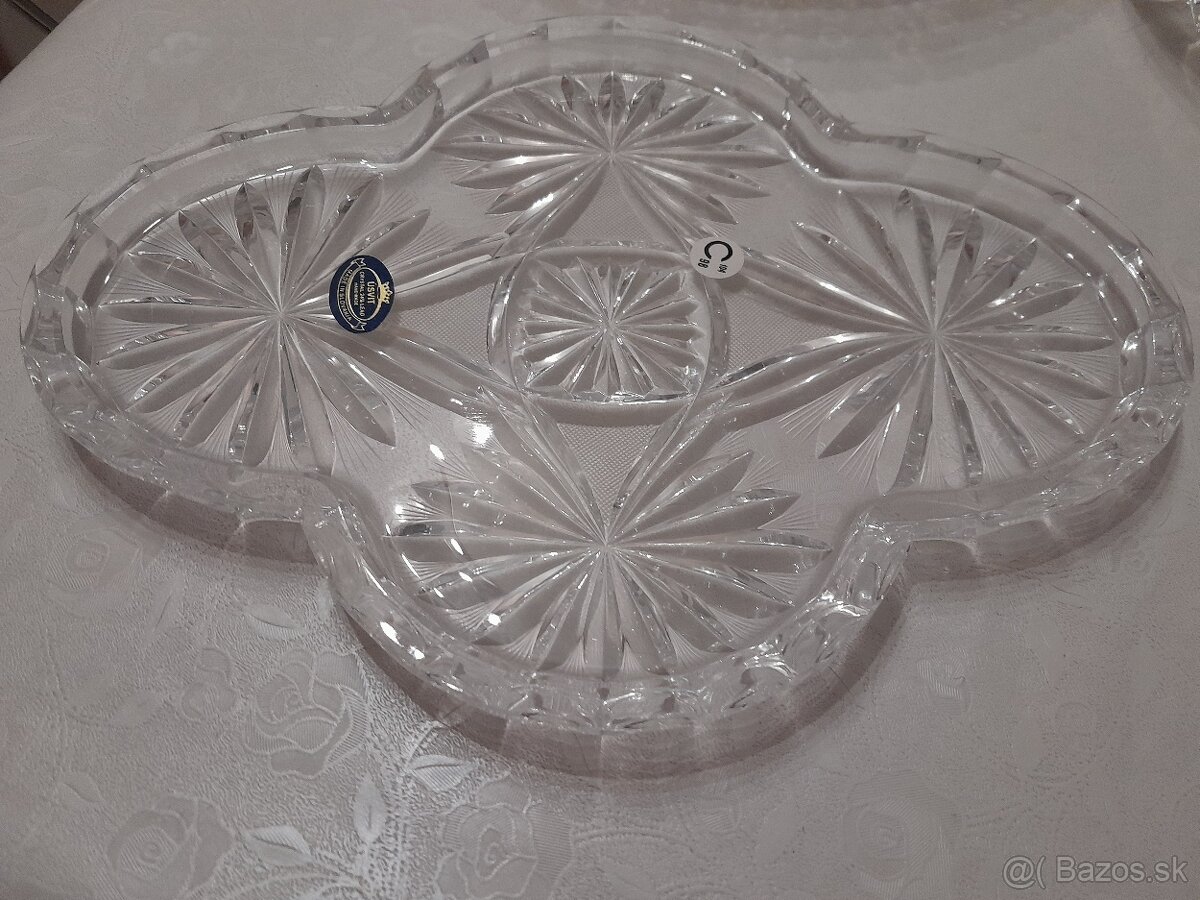 Na predaj ponúkam nádherný, vysoko kvalitný krištáľový podnos od renomovaného slovenského výrobcu Úsvit.Rozmery: Výška 2 cm, šírka 31 cm.je v perfektnom stave, bez akýchkoľvek poškodení, škrabancov či oťukov.na elegantné servírovanie koláčov, zákuskov, dezertov, cukroviniek