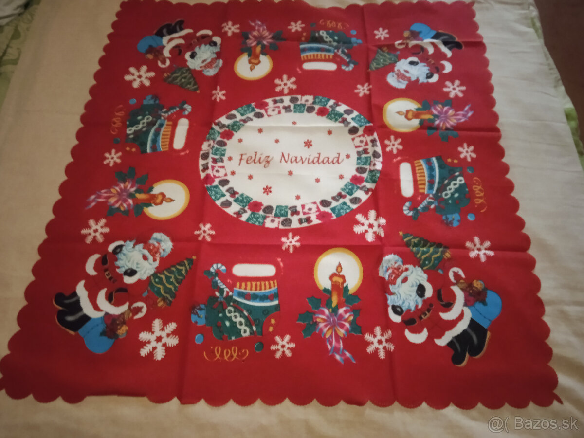 predam vianočny obrus , novy, nepoužity 100% polyester 80x 80 cm