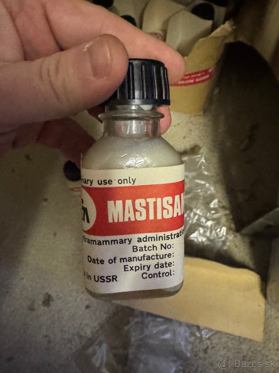 Ponúkam na predaj originálnu fľaštičku veterinárneho liečiva Mastisan 7 kusov, vyrobenú v bývalom ZSSR (Made in USSR). Ide o exportnú verziu s popismi v anglickom jazyku, určenú pre medzinárodný trh. Pravdepodobne 70. – 80. roky 20. storočia, na zberateľské a dekoračné účely. Fľaštička je v pôvodnom stave, nikdy neotvorená, s kompletnou a veľmi dobre zachovalou grafickou etiketou.